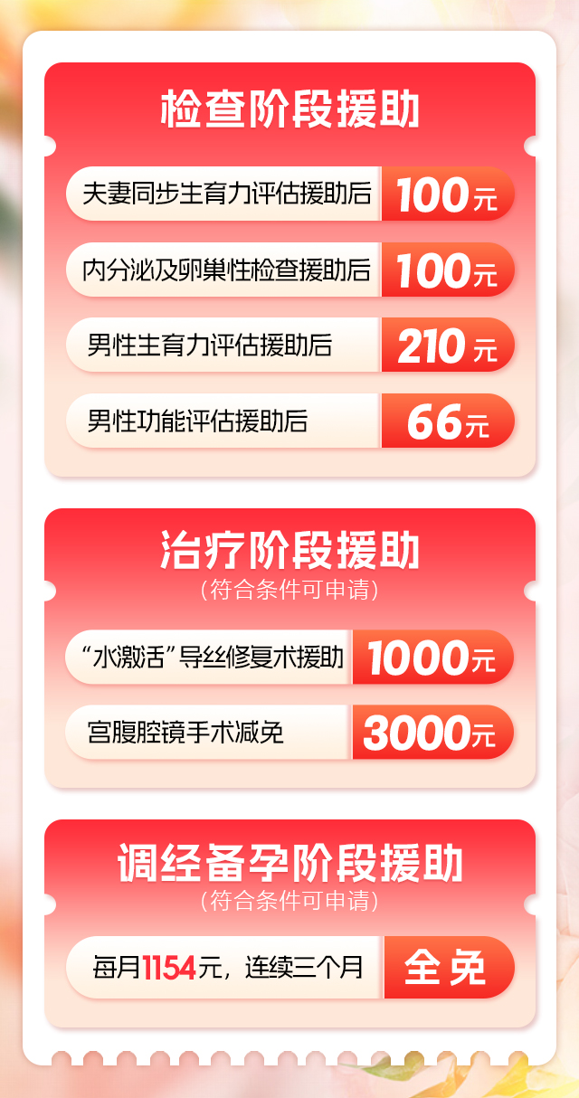 为切实缓解不孕不育家庭的经济压力,郑州慈善总会送子公益基金为来院患者提供“优生及不孕普查保障型援助”和“疑难性不孕深度帮扶服务”。患者只需报名登记,即可通过免申报、直接补贴的便捷服务,获得从检查到治疗的全程援助,让求子之路更顺畅。点击在线咨询,免费申请补助